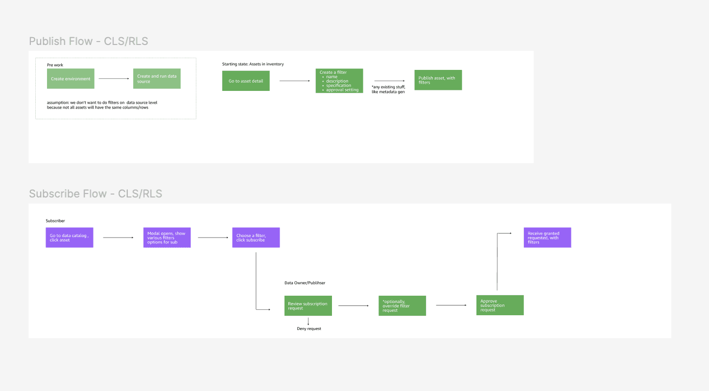 Because our product supports both publishers and subscribers, I mapped flows for each and explored a key question: should subscribers know they’re receiving restricted data?
