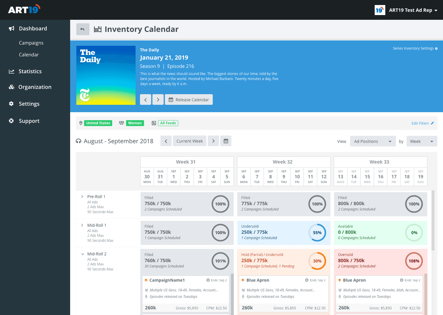Podcast ad sellers lacked visibility into how much of their available inventory was sold versus unsold, making it difficult to identify revenue opportunities.